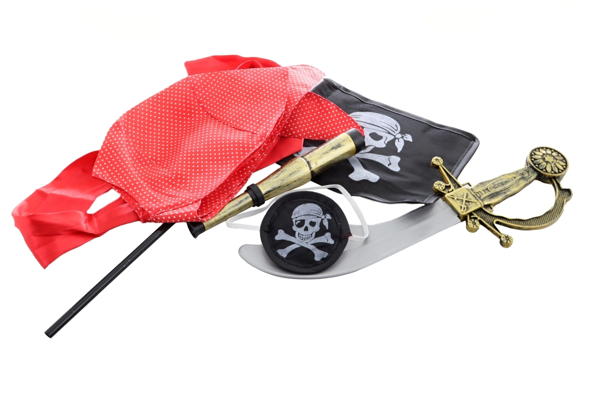 De la pelerină și pantaloni scurți la sabie, steag și pachet pentru ochi – copilul are imediat tot ce îi trebuie pentru aventură, fără a fi nevoie de accesorii suplimentare.
