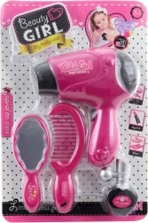 Acest set de coafură pentru copii va încânta toate micile stiliste. Foenul ușor pe baterii este sigur pentru mâinile copiilor și, împreună cu oglinda, pieptenele și sticluța pentru „parfum”, creează echipamentul perfect pentru joaca de-a salonul de coafură. Datorită dimensiunilor compacte, setul se transportă și se depozitează ușor.