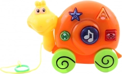 Acest melc drăgălaș de tras cu baterii va încânta orice copil de la 10 luni. În timpul mersului redă melodii și sunete de animale, susține dezvoltarea motricității și oferă distracție pentru mult timp. Alimentarea este asigurată de 2× baterii AA (neincluse).