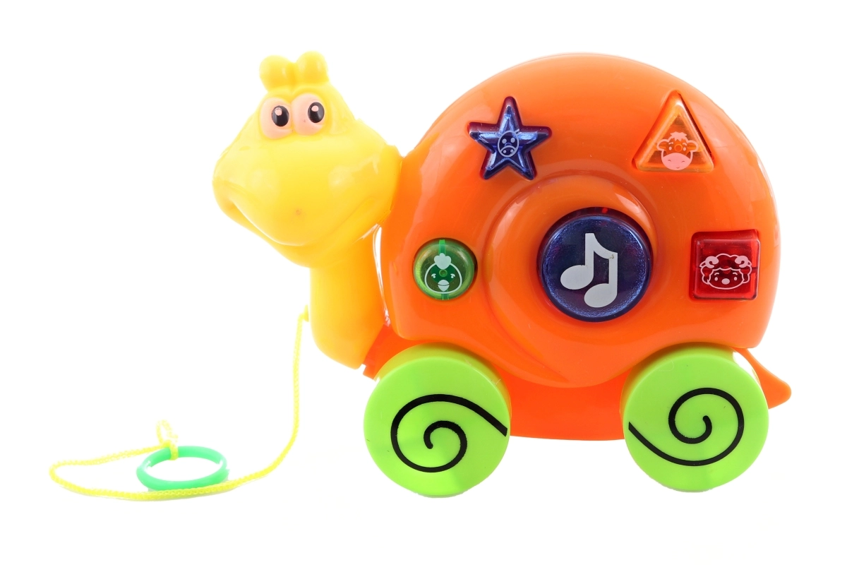 Acest melc colorat de tras este jucăria ideală de început cu șnur. În mișcare emite melodii vesele și sunete de animale, stimulând curiozitatea copiilor și dezvoltând simțurile. Datorită construcției din plastic robuste este sigur și rezistent pentru joaca de zi cu zi.