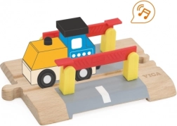 Construcția robustă din lemn asigură durabilitate și joacă în siguranță. Capetele compatibile permit conectarea facilă la majoritatea sistemelor din lemn pentru șine și drumuri. Alimentarea cu 2 baterii tip buton oferă efecte atractive care stimulează imaginația și concentrarea.