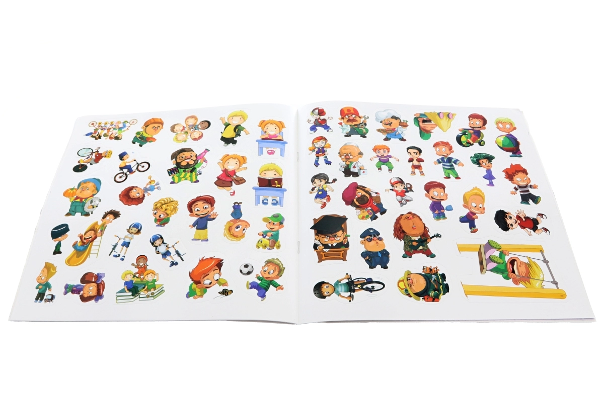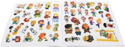 Două foi de autocolante colorate cu motive vesele dezvoltă imaginația și permit completarea imaginilor sau decorarea caietelor și jurnalelor.