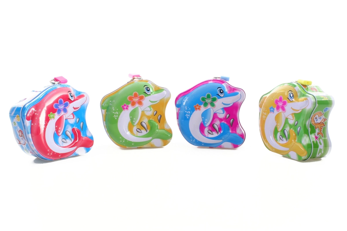 Această pușculiță metalică, cu un motiv drăguț de delfin, este o soluție excelentă pentru depozitarea clară și sigură a monedelor și bancnotelor. Datorită închiderii cu cheiță, economiile dumneavoastră rămân în siguranță, iar dimensiunile compacte permit depozitarea facilă pe raft, în sertar sau pe birou.