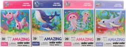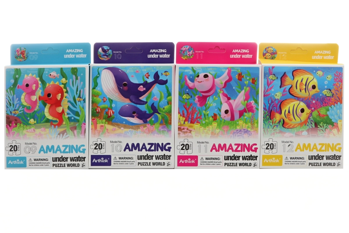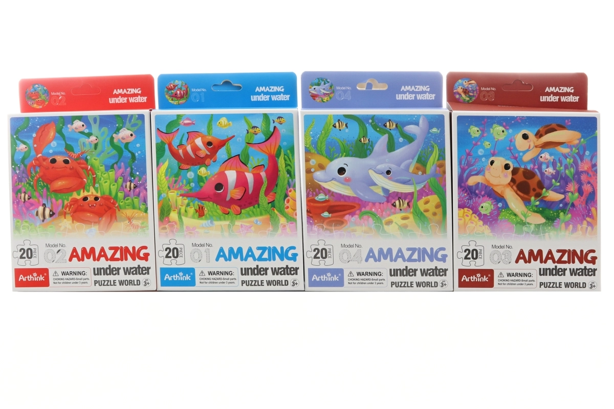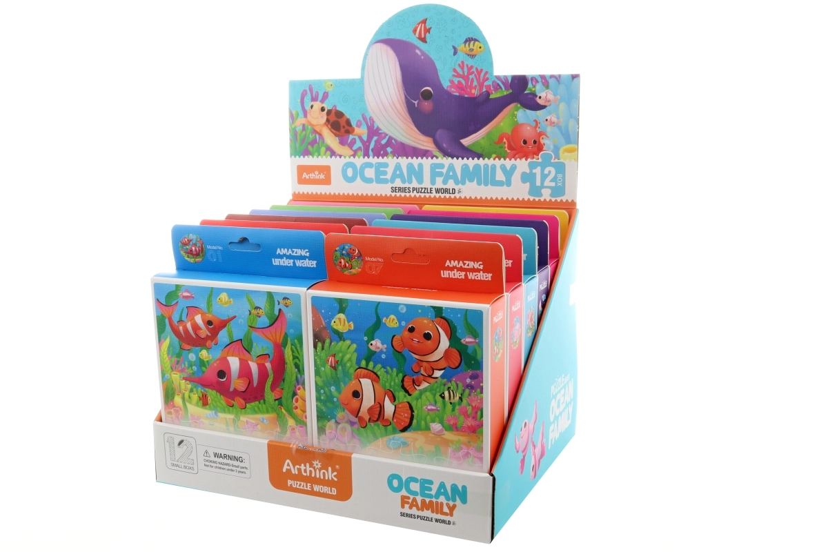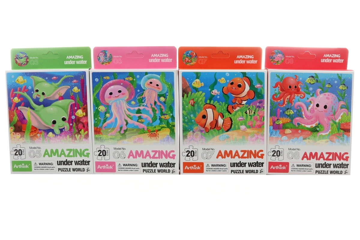 După asamblare, puzzle-ul are dimensiuni compacte de 21 × 19 cm, astfel că se depozitează și se transportă ușor. Din cele 12 modele disponibile, trimitem varianta în funcție de disponibilitatea actuală în stoc, fiecare ilustrând scene atractive din viața subacvatică.