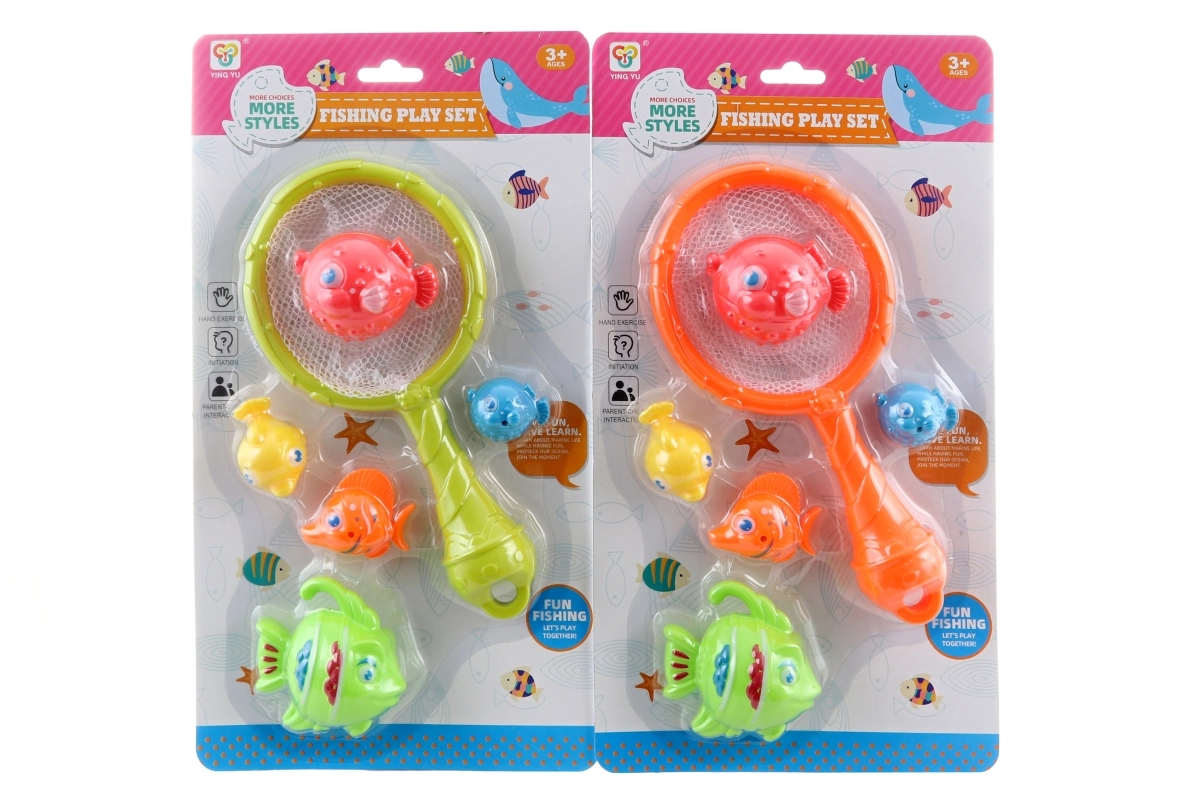 În pachet găsiți un minciog și 5 peștișori de forme și dimensiuni diferite, atrăgători prin culorile lor. Perfect pentru distracție în cadă, piscină sau pentru joaca de-a pescarul în camera copiilor.