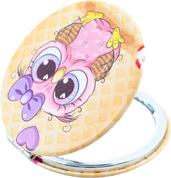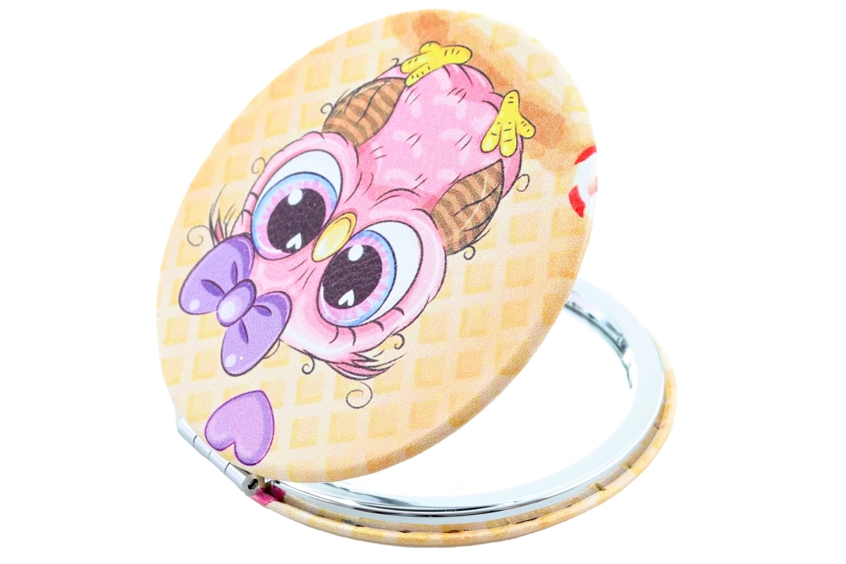 O adorabilă oglindă de buzunar cu motiv de bufnițe, ideală pentru poșetă sau geanta de călătorie. Are un diametru de aprox. 7 cm și, odată deschisă, oferă oglindă pe ambele părți pentru o verificare rapidă a aspectului. Este disponibilă în mai multe modele – trimitem în funcție de disponibilitatea actuală în stoc. Ambalată în săculeț. Produsul nu este o jucărie.