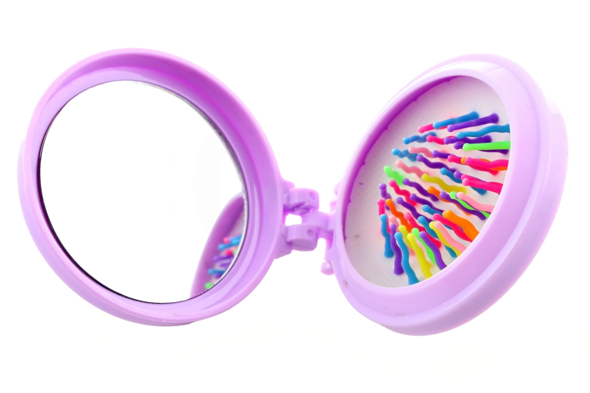Practică și drăguță perie de buzunar cu oglindă pentru retușuri rapide oriunde. La deschidere găsești oglindă pe o parte și perie/piaptăn pe cealaltă, ideală pentru poșetă, rucsac și călătorii. Diametru compact de 6 cm, material plastic ușor și mai multe variante de culori livrate în funcție de disponibilitatea stocului.