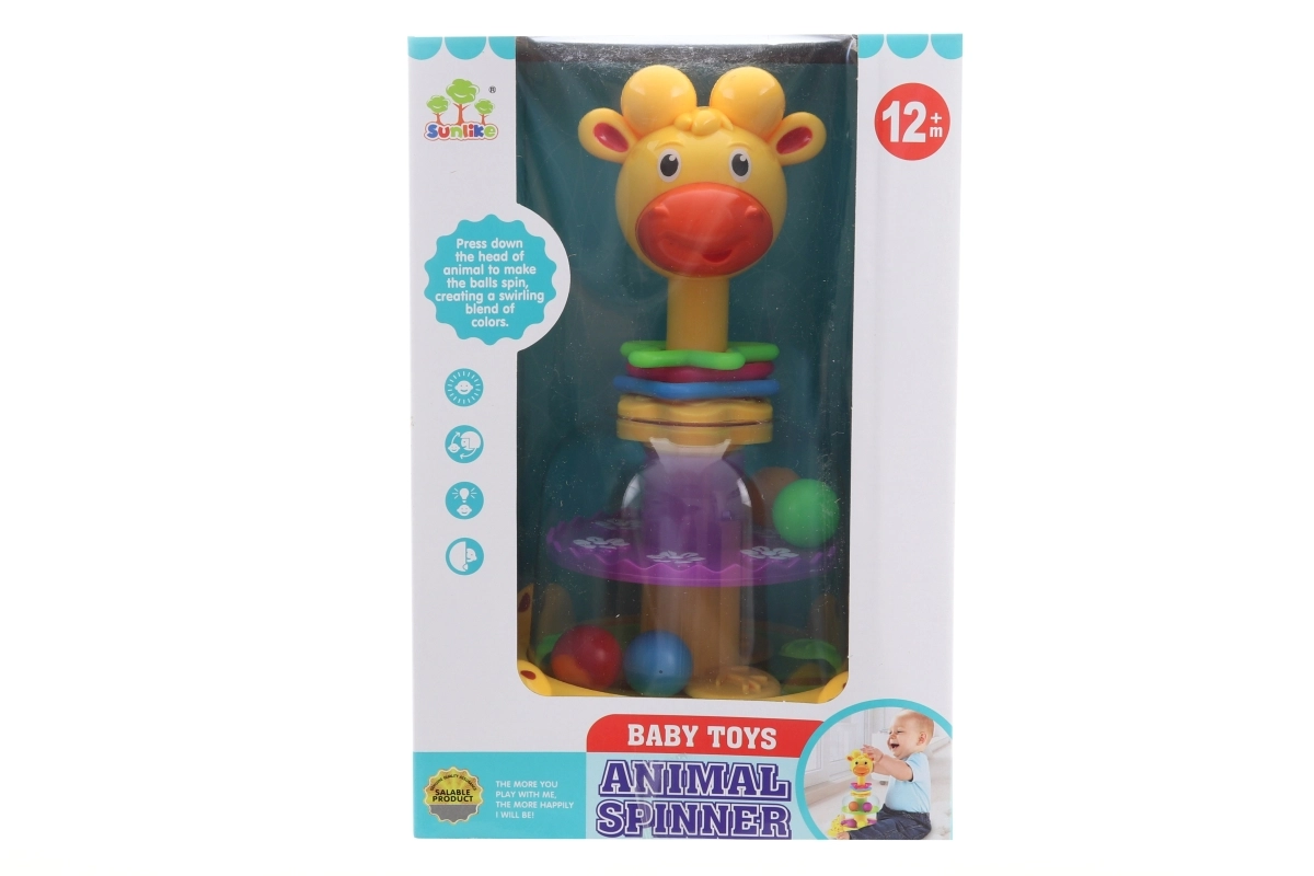 Această jucărie rotativă veselă în formă de girafă aduce copiilor bucuria mișcării și a descoperirii. Printr-o simplă apăsare a capului girafei, piesele interne cu biluțe se rotesc, creând un efect vizual captivant și motivând copiii să se joace din nou și din nou. Titirezul este ideal pentru dezvoltarea motricității fine, a coordonării mână–ochi și a percepției culorilor.