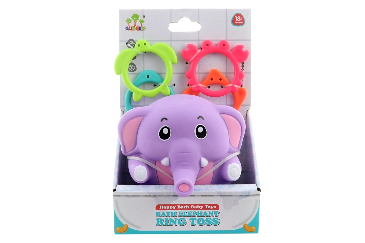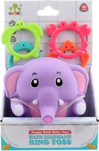 Joc distractiv pentru copiii mici, în care arunci inele pe trompa unui elefănțel drăgălaș. Susține motricitatea fină, coordonarea mână–ochi și răbdarea. Inelele colorate cu motive de animale marine invită la joacă și la învățarea formelor și culorilor. Ideal ca jucărie pentru copii de la 18 luni.