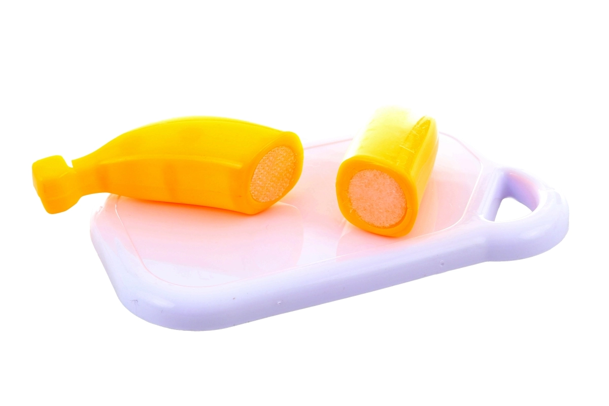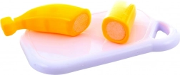 Include cuțitaș pentru copii, tocător și farfuriuță. Copiii pot tăia fructele, le pot servi și pot învăța despre pregătirea mâncării într-un mod ludic.