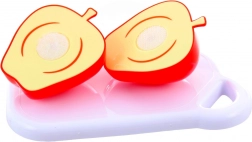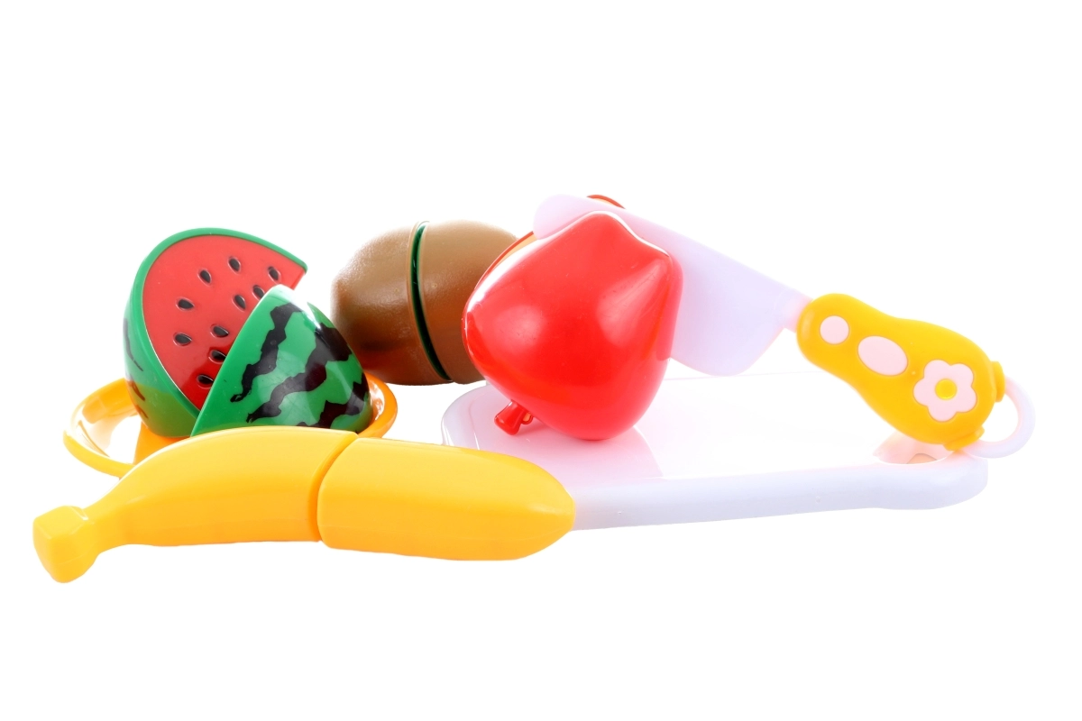Acest set colorat din plastic pentru tăiat fructe este ideal pentru primele încercări în bucătărie. Fructele sunt împărțite în jumătăți și unite cu arici, astfel încât copiii pot „tăia” în siguranță cu cuțitașul și le pot reasambla. Excelent pentru dezvoltarea motricității fine, coordonării mână–ochi și pentru a învăța despre alimentația sănătoasă.