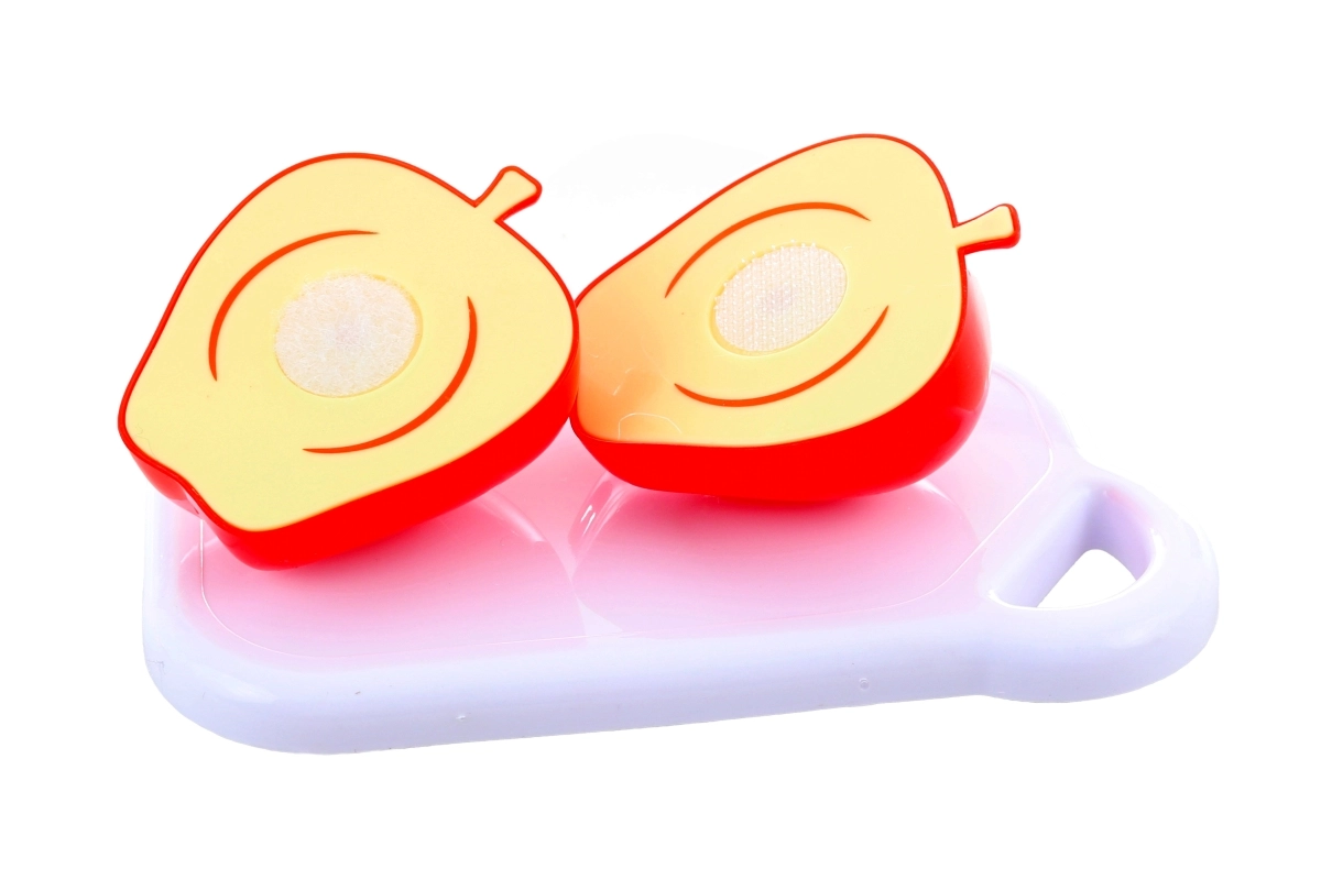 Jumătățile de fruct se țin împreună cu ajutorul ariciului și, la „tăiere”, oferă rezistență și sunet realist – excelent pentru exersarea motricității și un joc plin de distracție.