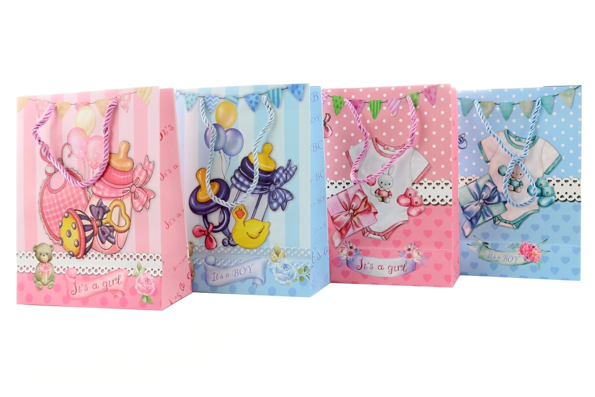 Această pungă cadou stilată, cu efect 3D, este perfectă pentru daruri cu ocazia nașterii unui bebeluș. Datorită materialului de hârtie rezistent și dimensiunilor practice, încape confortabil un mic trusou, cosmetice pentru bebeluși sau suveniruri.