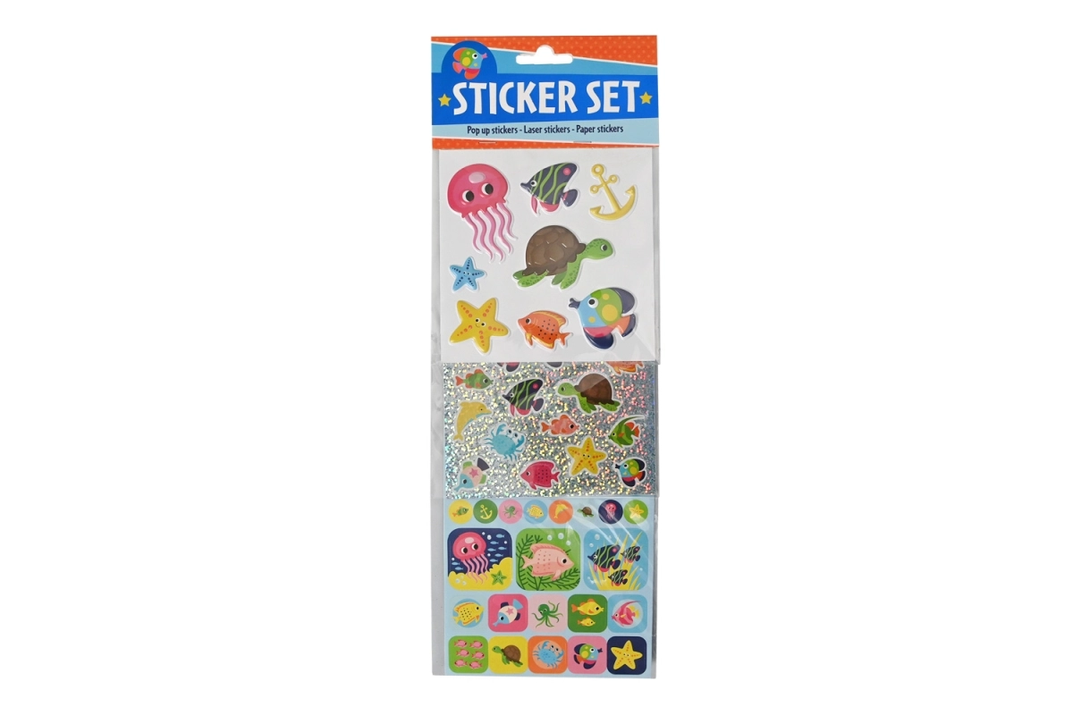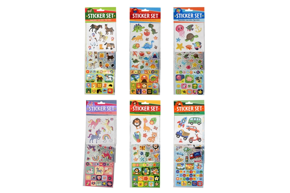 Mixul de modele (animăluțe, dinozauri, lumea marină, unicorni, vehicule și altele) le permite copiilor să-și dezvolte imaginația și motricitatea fină. Pachetul este ambalat practic într-un săculeț cu agățare, astfel încât autocolantele se depozitează și se oferă ușor cadou.