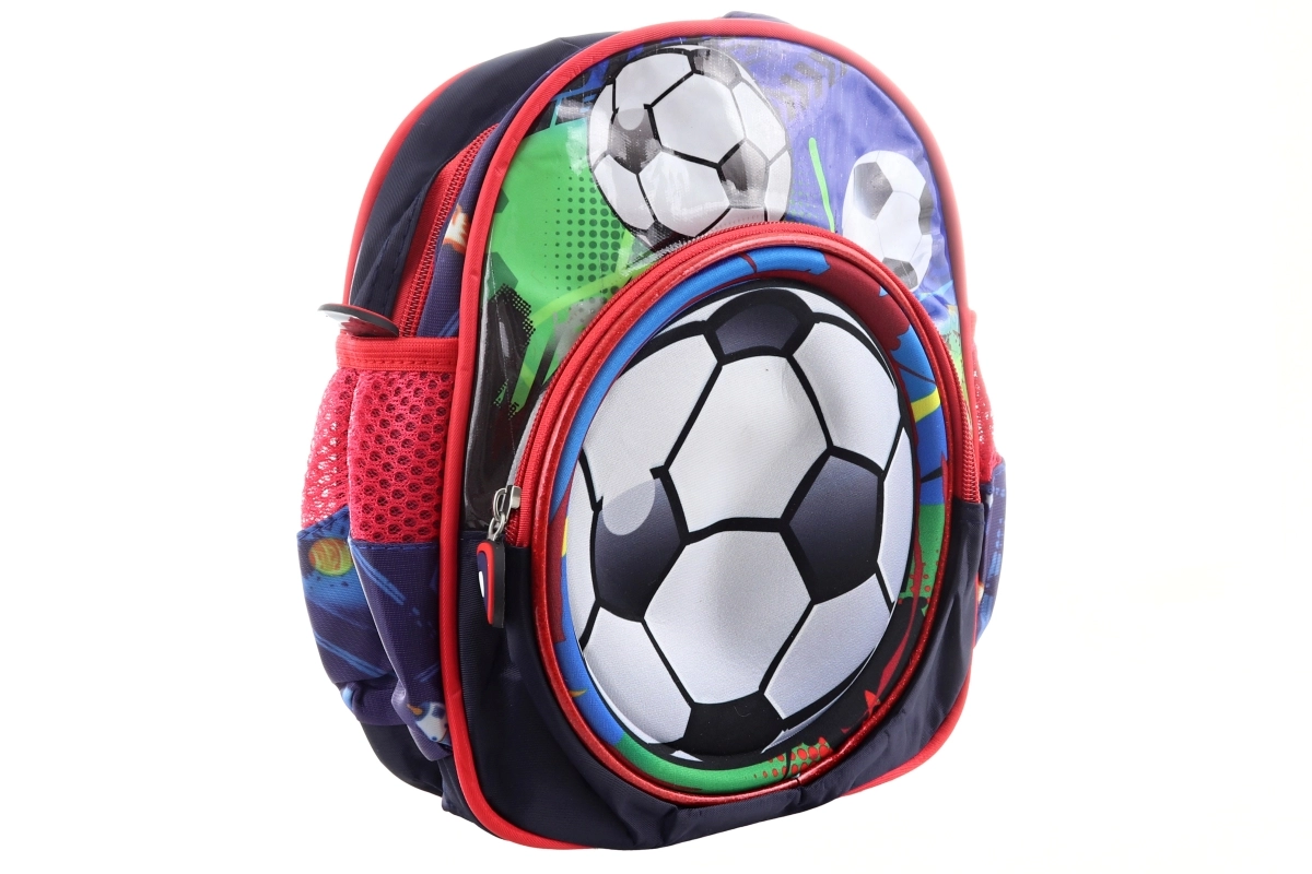 Rucsacul pentru copii, cu motiv de fotbal, este o alegere excelentă pentru micii sportivi. Partea frontală modelată oferă rucsacului un aspect atrăgător, iar materialul textil ușor garantează confort la utilizarea de zi cu zi. Datorită dimensiunilor compacte, este potrivit pentru gustare, sticlă, penar sau jucării mici.