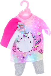Set drăguț de haine pentru păpușă ce include pantaloni, tricou și căciuliță. Este perfect pentru joacă de zi cu zi și pentru schimbarea ținutelor păpușilor. Ținuta este livrată pe umeraș, în săculeț, fiind gata de utilizare și ușor de depozitat.