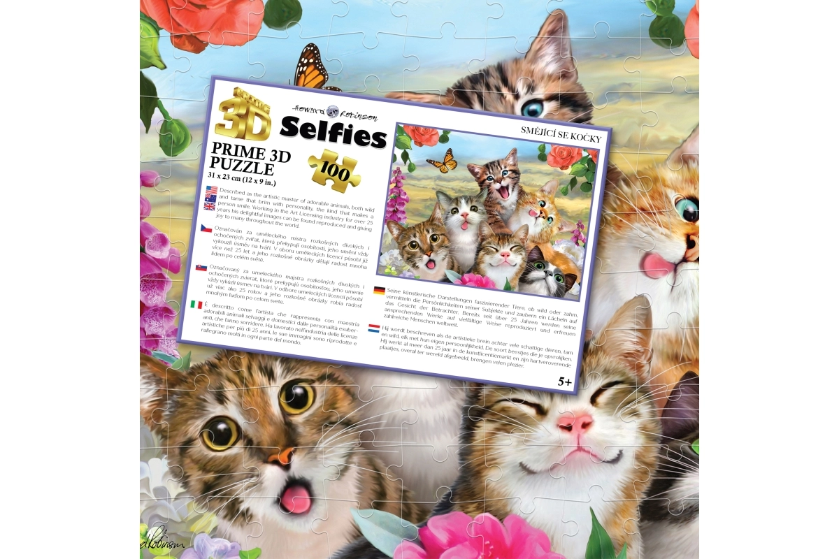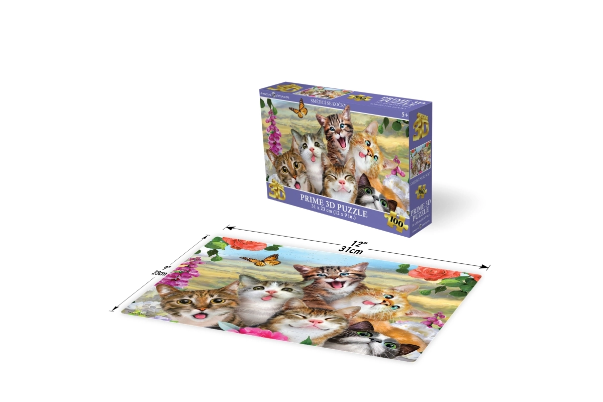 Descoperă distractivul puzzle 3D cu motivul pisicilor zâmbitoare, care va încânta micii și marii iubitori de puzzle. Pachetul conține 100 de piese, recomandat pentru copii de la 5 ani. După asamblare, rezultă o imagine de calitate cu dimensiunile 31 × 23 cm.