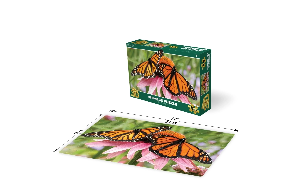 Acest puzzle 3D cu superbi fluturi monarh oferă un efect vizual captivant datorită tehnologiei lenticulare, care creează la mișcare o impresie spațială realistă. Cu 100 de piese, este excelent atât pentru începători, cât și pentru pasionații de nivel intermediar și oferă o provocare plăcută și distracție.