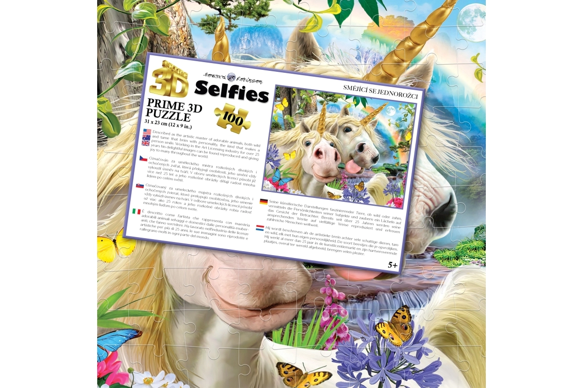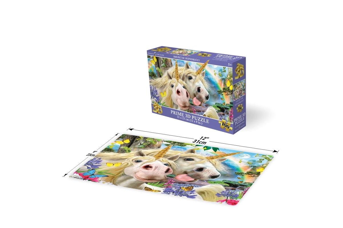 Descoperă farmecul asamblării cu drăgălașul puzzle 3D cu motivul unicornilor zâmbitori. Pachetul conține 100 de piese, care după asamblare formează o imagine cu dimensiunile de 31 × 23 cm. Distracție ideală pentru copii de la 5 ani, care dezvoltă motricitatea fină, răbdarea și imaginația.