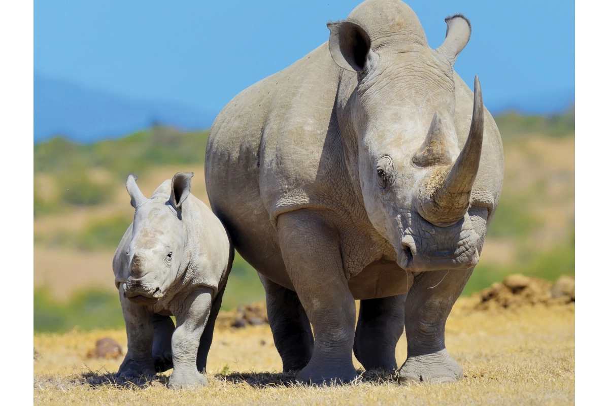 - Motiv realist cu rinoceri – educativ și vizual atractiv.