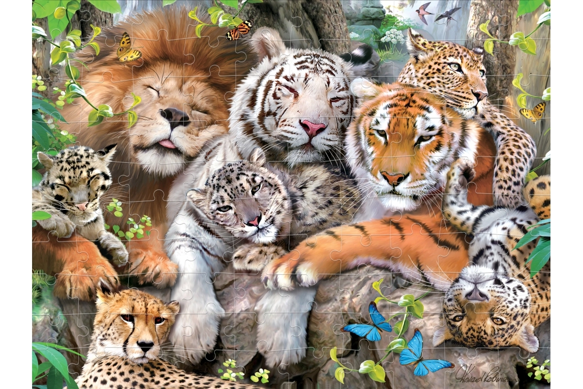 Intrați în lumea naturii sălbatice cu motivul impresionant al felinelor adormite. Acest puzzle 3D oferă o combinație grozavă de distracție și învățare – copiii își exersează percepția spațială, concentrarea și coordonarea mână–ochi. Datorită celor 100 de piese tăiate cu precizie, asamblarea este o provocare plăcută atât pentru începători, cât și pentru micii constructori mai avansați.