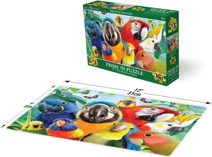 Intră în lumea culorilor tropicale cu puzzle-ul 3D Papagali zâmbitori. Datorită celor 100 de piese de calitate și dimensiunii imaginii finalizate de 31 × 23 cm, asamblarea este ideală pentru divertismentul de după-amiază și dezvoltarea abilităților copiilor. Piesele se îmbină perfect, iar motivul papagalilor veseli îi va încânta pe toți micii creatori.