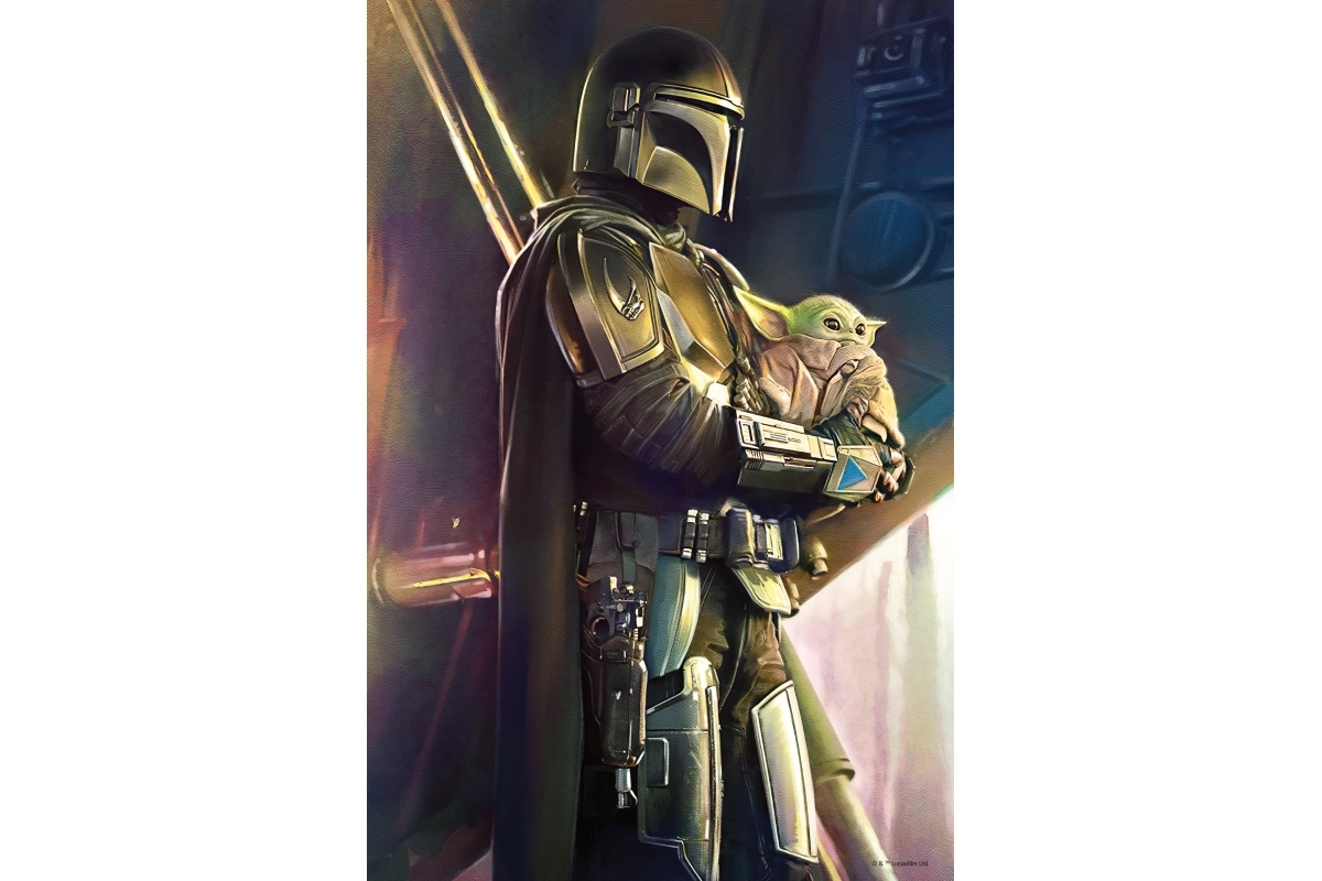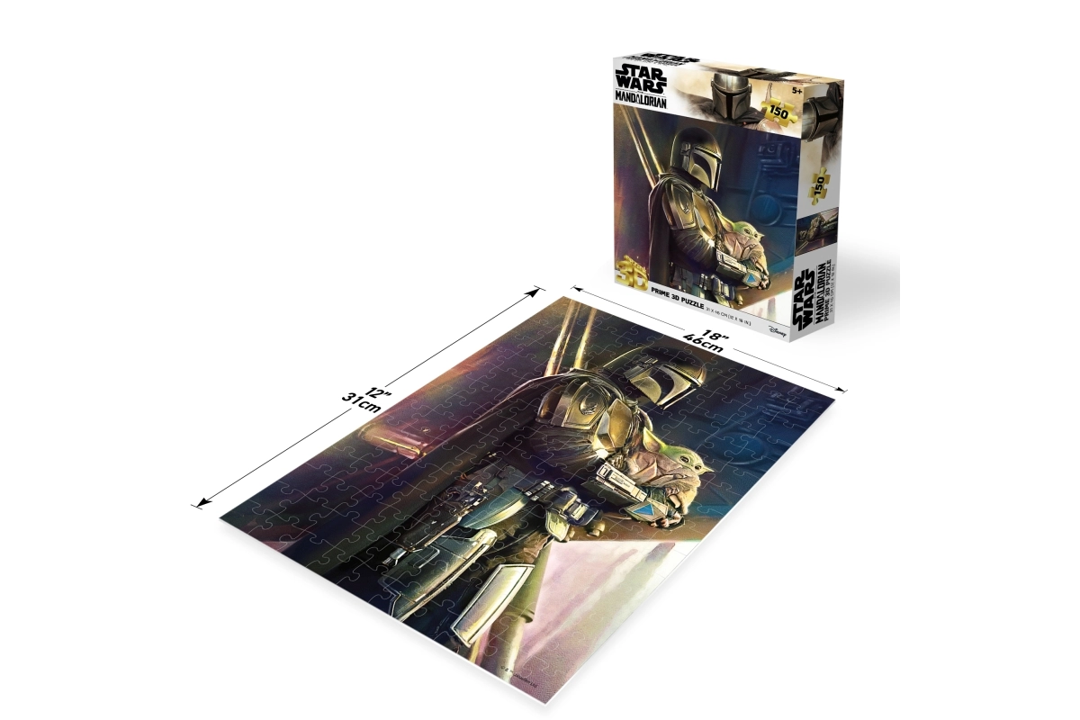 Prelucrarea specială 3D (lenticulară) oferă motivului asamblat profunzime și dinamism – Mandalorian împreună cu Grogu ies în evidență din orice unghi.