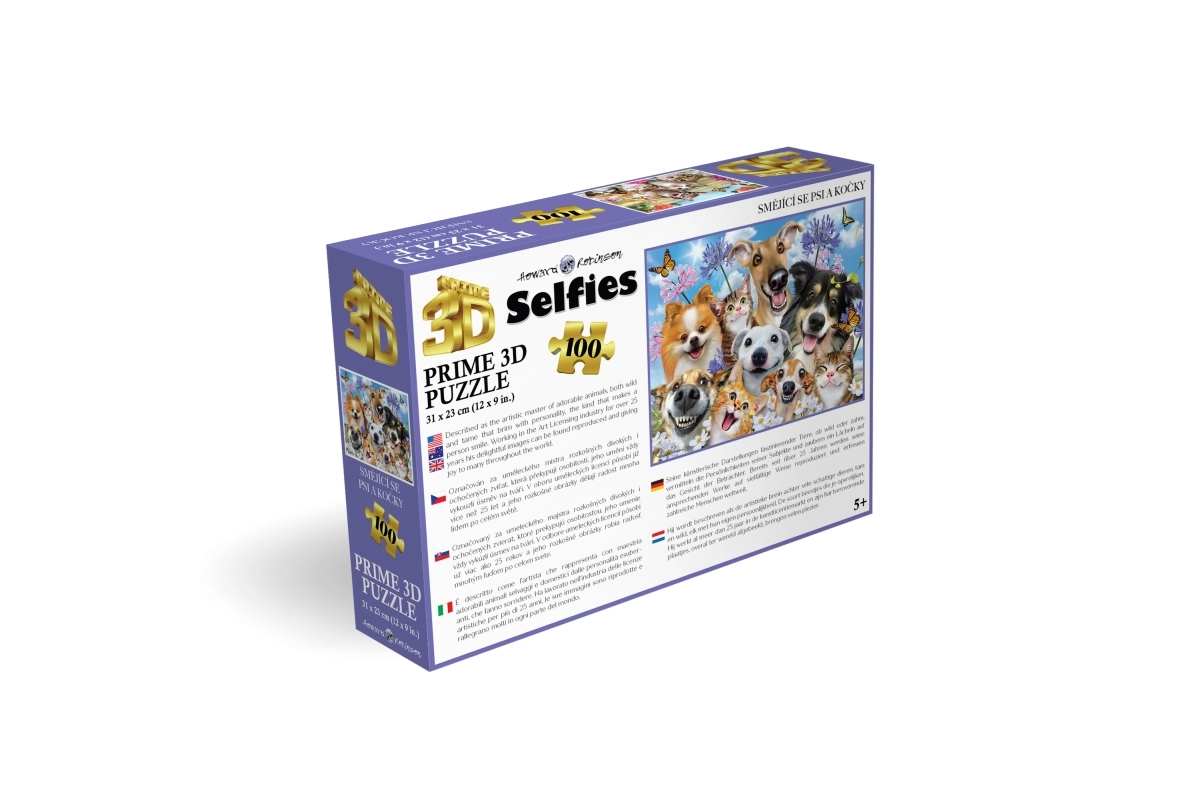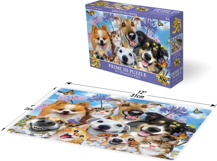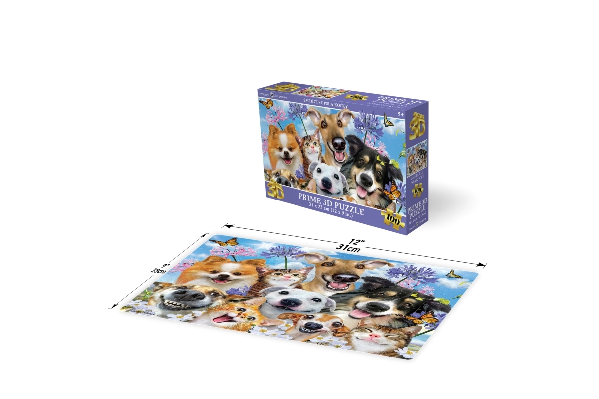 Bucurați-vă de distracție pentru întreaga familie cu puzzle-ul 3D cu motivul câinilor și pisicilor zâmbitoare. Jocul cu 100 de piese oferă un frumos efect 3D, dimensiunea imaginii asamblate 31 × 23 cm și este ideal pentru copiii de la 5 ani.