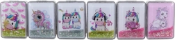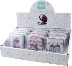 Răsfață-te cu un accesoriu drăguț și practic pentru geantă. Oglinda de buzunar dreptunghiulară cu motiv de unicorni atrage atenția prin sclipiciul fluid de pe fața din față și oferă două suprafețe oglindă la deschidere. Ideală pentru retușuri rapide ale machiajului în deplasare.