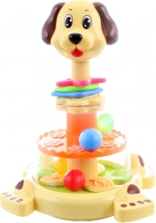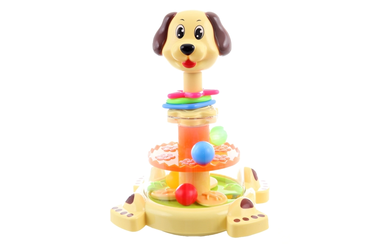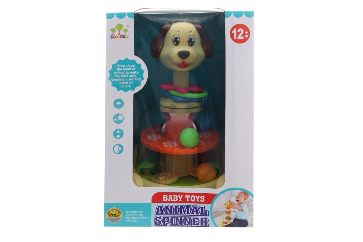 Acest titirez adorabil cu motiv de cățeluș îi va încânta pe micii exploratori. Printr-o apăsare simplă a capului, mecanismul se activează și în interior se învârt biluțe colorate. Jucăria sprijină coordonarea mână–ochi și îi învață pe copii relațiile cauză–efect.