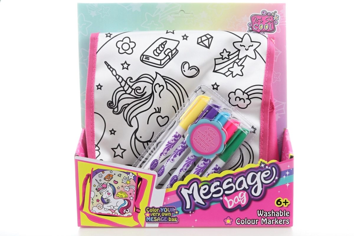 Descoperă geanta magică de colorat cu motiv de unicorn, care oferă copiilor ore întregi de distracție creativă. Datorită închiderii practice cu arici și baretelor roz, geanta se poartă confortabil și se deschide ușor. În pachet găsești tot ce ai nevoie – geanta propriu-zisă și 5 carioci/culori, ca să poți începe să creezi imediat.