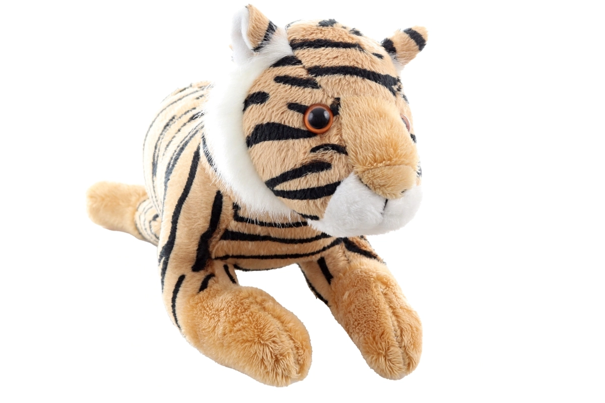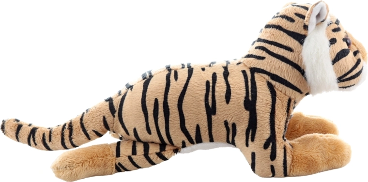 Dungi tigrat autentice, broderii fine și o expresie simpatică stimulează imaginația și dezvoltarea simțurilor în timpul jocului.