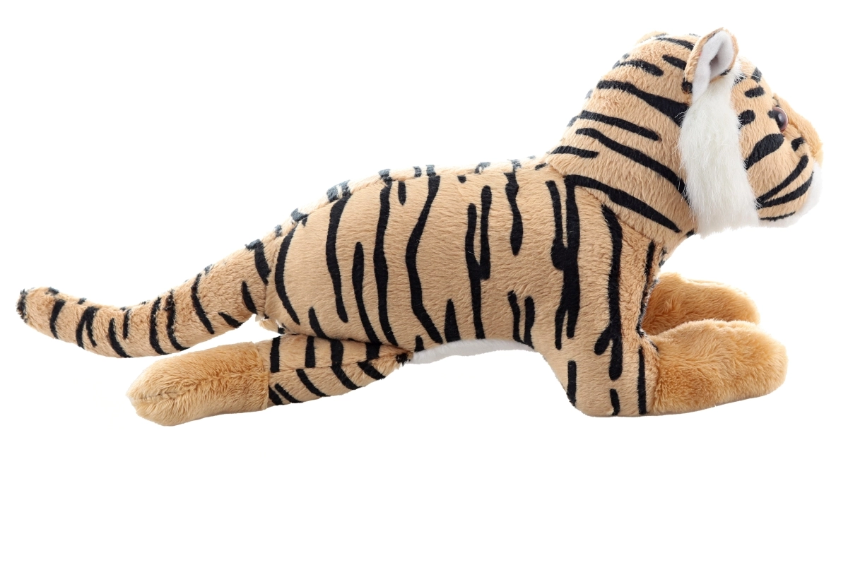 Acest tigru de pluș maro este conceput pentru a le oferi copiilor un sentiment de siguranță și bucurie. Datorită plușului fin și catifelat, este excelent pentru somn, îmbrățișări și joacă zilnică. Dungile realiste și expresia prietenoasă susțin dezvoltarea imaginației și a legăturilor afective.