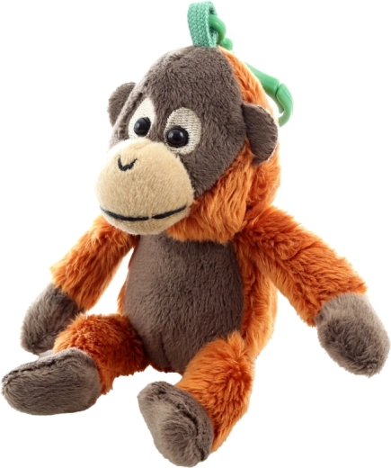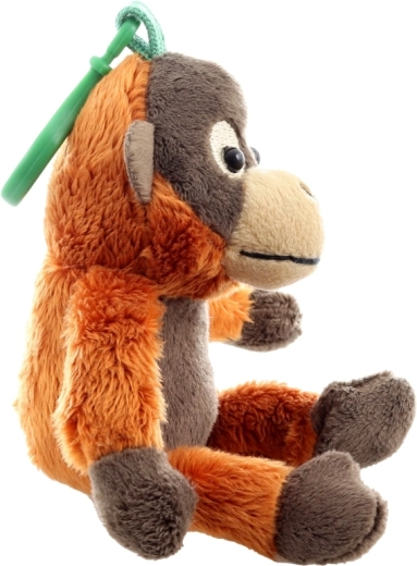 Clipsul verde permite prinderea rapidă a orangutanului de rucsac, cărucior sau chei – mereu la îndemână și gata de joacă.