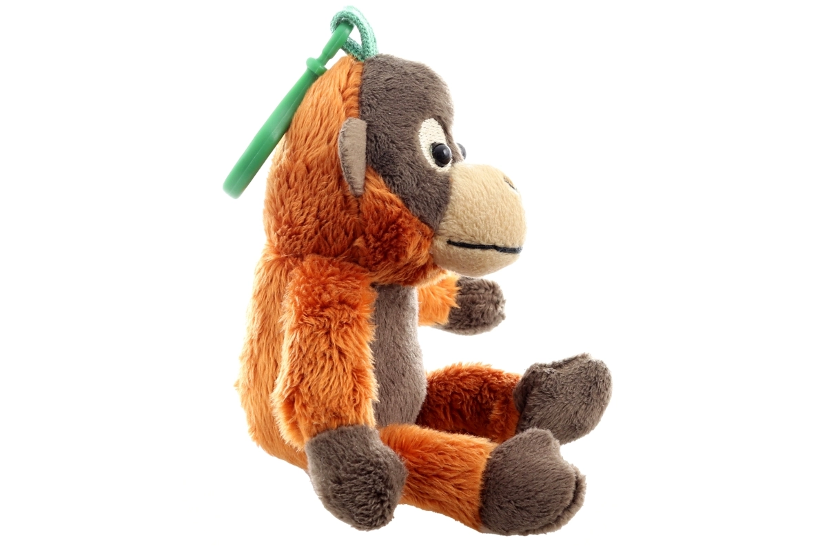 Descoperiți un companion adorabil, iubit atât de copii, cât și de părinți. Acest orangutan de pluș are o textură moale și plăcută la atingere și un clips verde practic pentru prindere oriunde – pe rucsacul școlar, chei sau geanta de călătorie. Datorită dimensiunii compacte de 12 cm, este ideal pentru drumuri și pentru mâna mică a copilului.