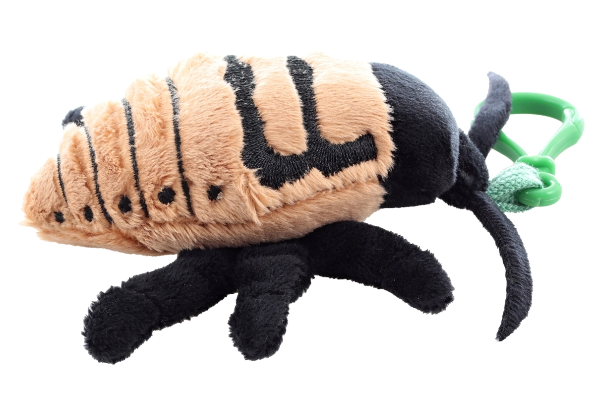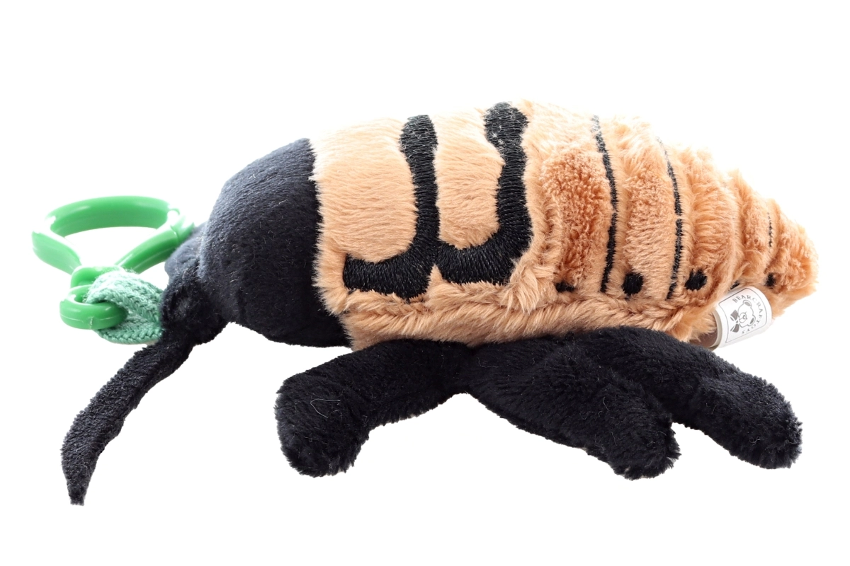 Acest gândac șuierător din pluș în miniatură îmbină designul drăguț cu utilitatea practică. Datorită plușului moale este plăcut la atingere, în timp ce clipul din plastic rezistent asigură o prindere rapidă oriunde – la fermoar, geantă sau chei. Detaliile brodate fine și multiplele piciorușe oferă jucăriei un aspect realist și jucăuș.