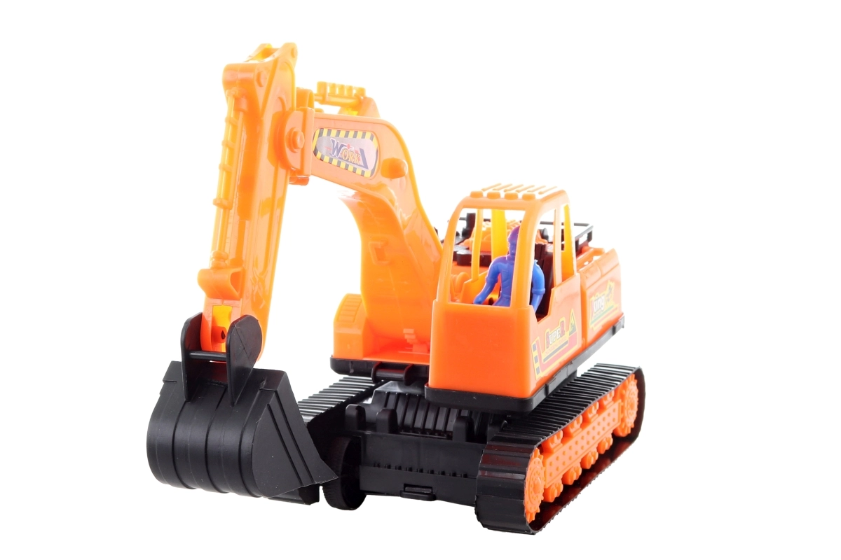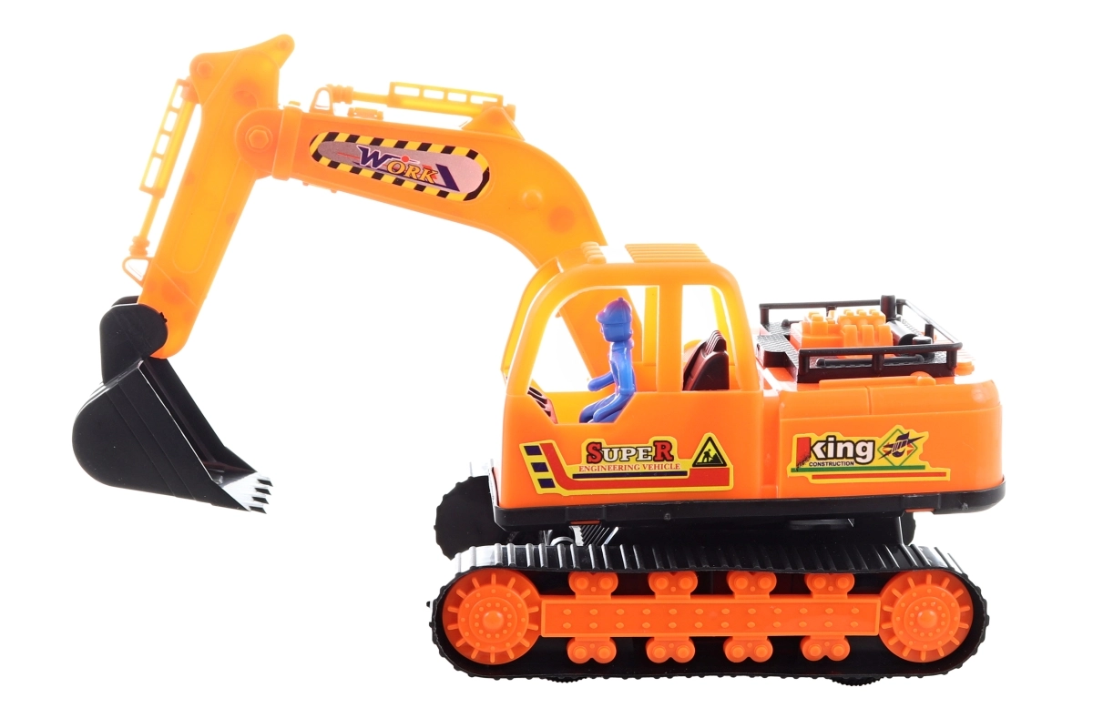 Excavatorul pe șenile din plastic, realist, îi va bucura pe micii constructori de la 3 ani. Are o execuție sigură, rulare lină pe roți și este gata pentru joacă imediată. Plastic rezistent, rulare liberă și dimensiuni compacte îl transformă într-o jucărie grozavă pentru acasă și în călătorii.