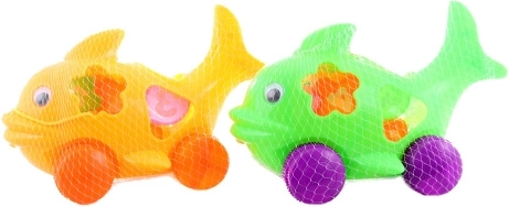 Acest peștișor colorat de inserat pe roți oferă distracție dublă – copiii pot trage jucăria de șnur și, în același timp, pot introduce 5 forme diferite. Susține dezvoltarea motricității fine, a coordonării mână–ochi și învățarea formelor și culorilor. Datorită rulării libere a roților, mersul este lin și ușor chiar și pentru cei mai mici.