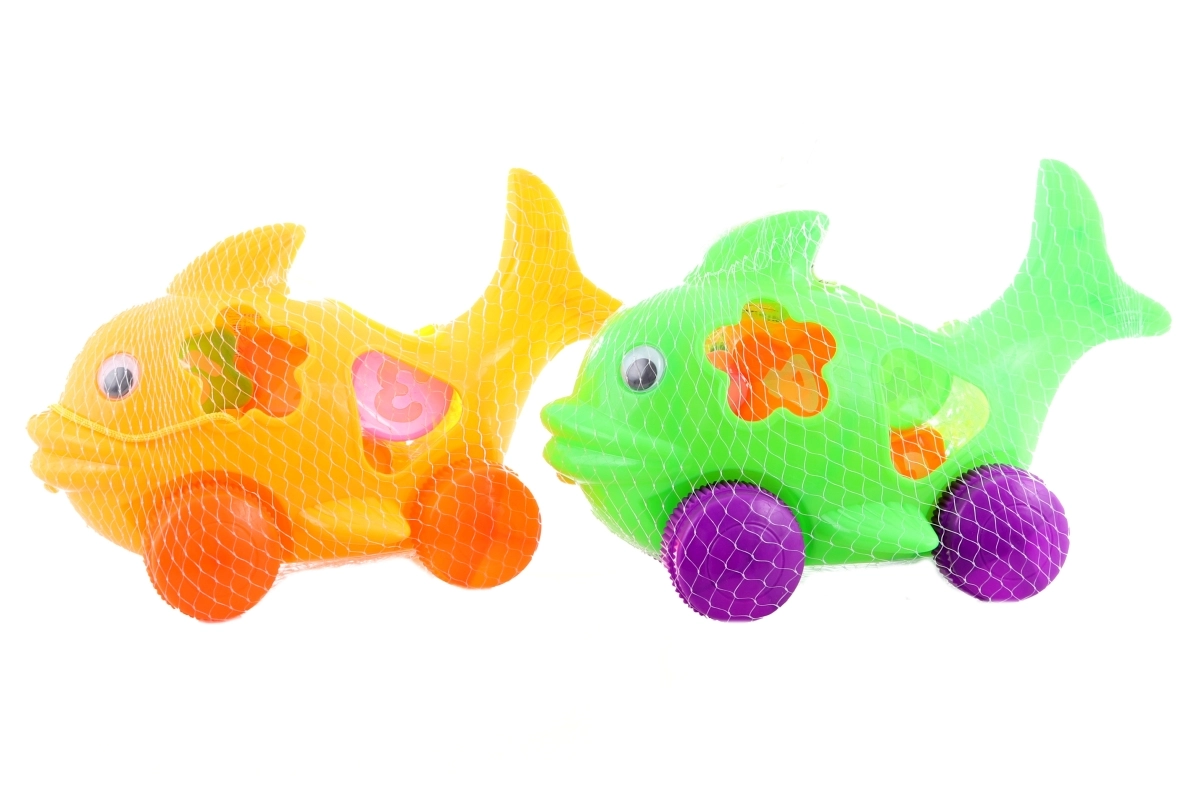 Peștișorul interactiv de inserat pe roți, cu rulare liberă, îmbină mișcarea cu învățarea. Copilul se va distra trăgând de șnur și, în același timp, va exersa recunoașterea formelor cu ajutorul celor 5 piese colorate. Jucăria din plastic rezistent este ușoară, sigură și ambalată în plasă. Dimensiuni 25 × 17 × 11,5 cm. Culoarea este livrată în funcție de stoc. Potrivită pentru dezvoltarea motricității fine, coordonării și logicii. Inserare de forme, jucărie de tras cu rulare liberă, 5 piese, plastic rezistent.