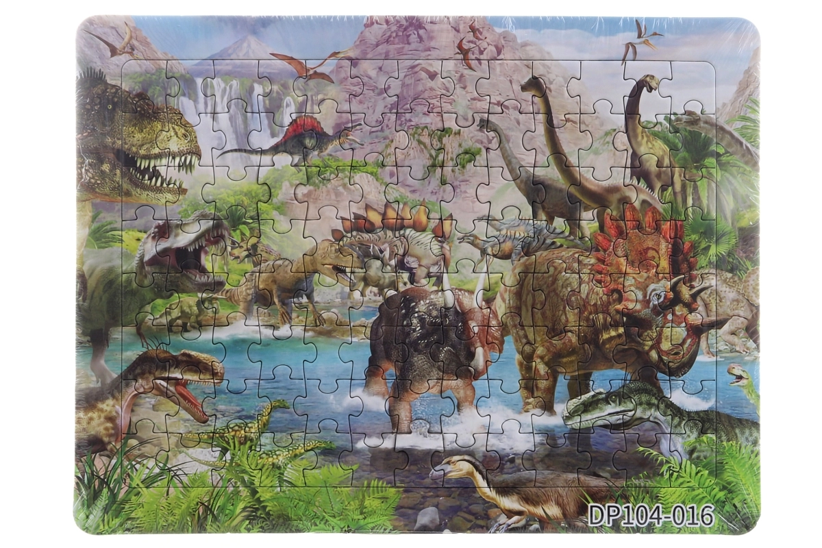 Acest puzzle colorat cu dinozauri îi va încânta pe toți micii iubitori ai preistoriei. Cu cele 104 piese, copiii își exersează răbdarea, concentrarea și percepția vizuală, bucurându-se în același timp de descoperirea detaliilor din imaginea finală.