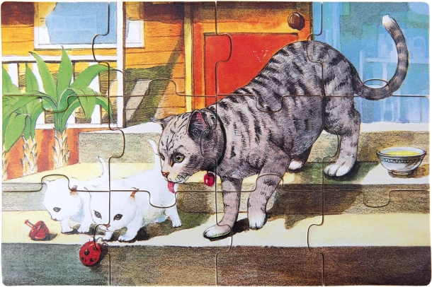 Descoperiți farmecul puzzle-urilor tradiționale din lemn, care prezintă motifuri precum pisica, câinele, caii și iepurașii. Setul include 48 de piese, ambalate într-o cutie practică cu capac, facilitând depozitarea și transportul lor.