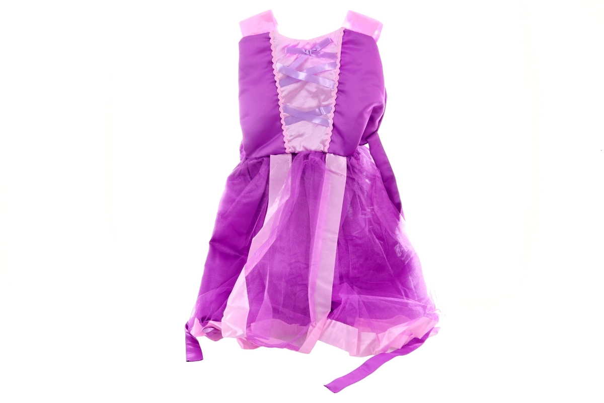 Împlinește visul unei transformări de basm – această rochie mov de prințesă, cu fustă din tul în straturi și corset satinat, va deveni costumul preferat al oricărei mici prințese. Datorită taliei elastice și materialelor ușoare, se poartă excelent și permite libertate totală de mișcare la dans și joacă.