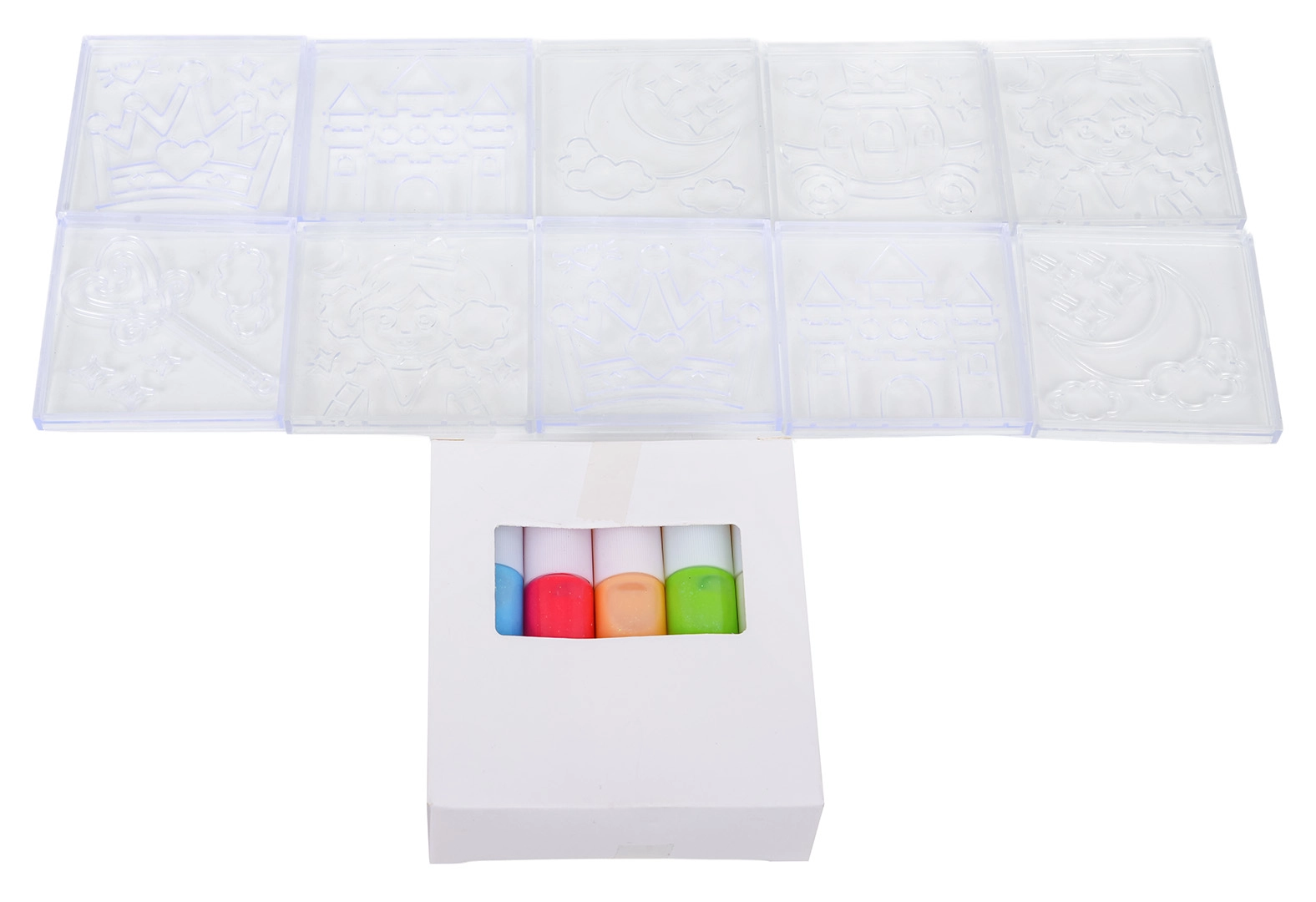 Piesele pentru colorat și cele 10 markere gel le permit copiilor să decoreze ferestre, blazoane și ornamente, oferind construcțiilor un stil personal.