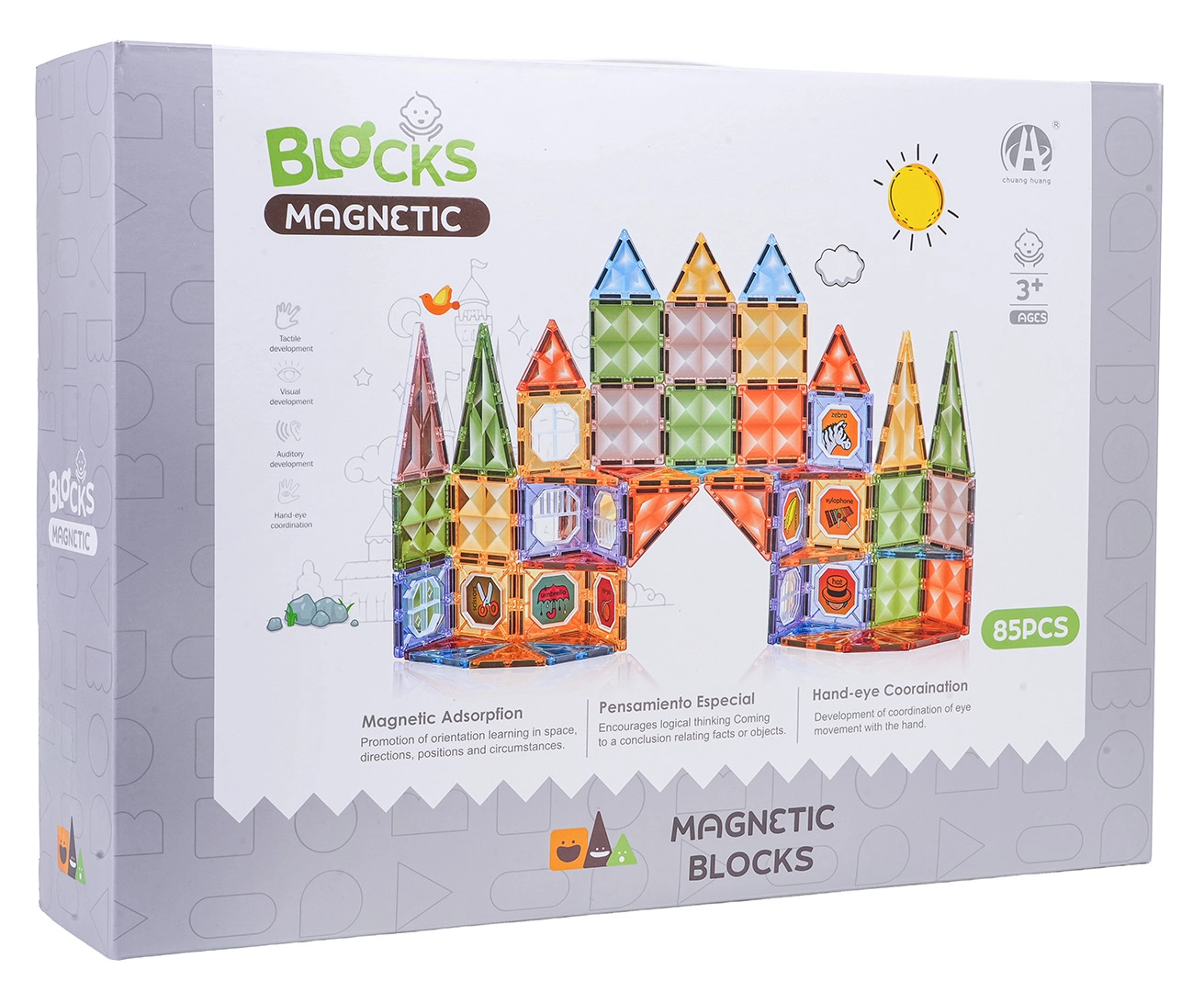 Descoperă lumea creativă cu setul de construcție magnetică 3D cu în total 85 de piese, ideal pentru copii de la 3 ani. Piesele din plastic rezistent se conectează în siguranță cu ajutorul magneților din neodim, astfel încât poți crea cu ușurință construcții 3D stabile în diverse forme și unghiuri. Setul dezvoltă creativitatea, răbdarea și concentrarea și încântă prin culori vii și autocolante decorative.