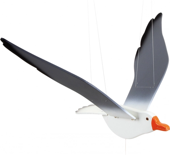 Prin tragerea de sfoara cu un mărgele, puteți mișca aripile sale și simula zborul pescărușului.