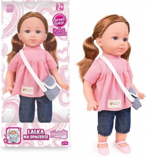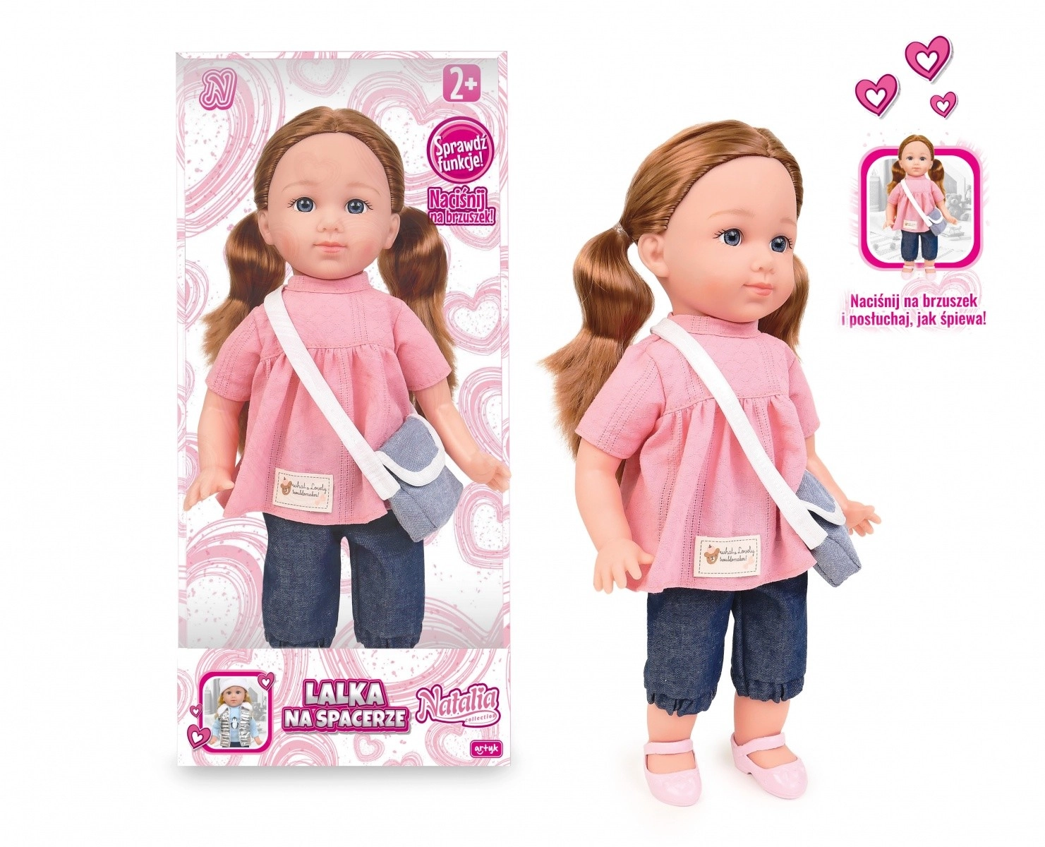Păpușa Natalia, în tunică roz și pantaloni la modă, oferă copiilor multă distracție și învățare. La apăsarea burticii rostește fraze în poloneză și cântă două melodii, sprijinind percepția auditivă și imitarea naturală a adulților. Execuția de calitate, trăsăturile delicate ale feței și membrele mobile o transformă într-o prietenă minunată pentru fiecare zi.