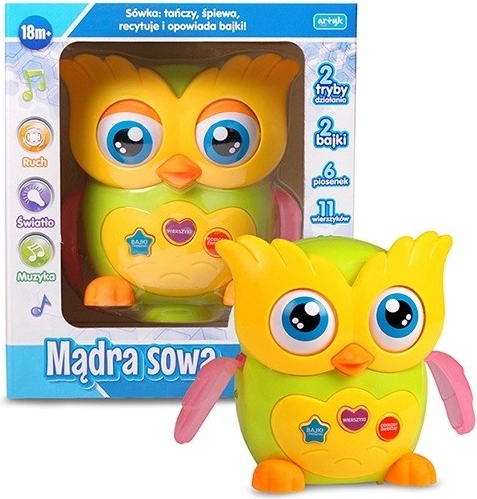 Jucăria oferă două moduri bine gândite: în primul mod bufnița spune povești și poezii, iar în al doilea cântă și se mișcă voioasă prin încăpere. Datorită gamei bogate de funcții și sunete, copiii o vor îndrăgi rapid și vor reveni cu plăcere la ea.