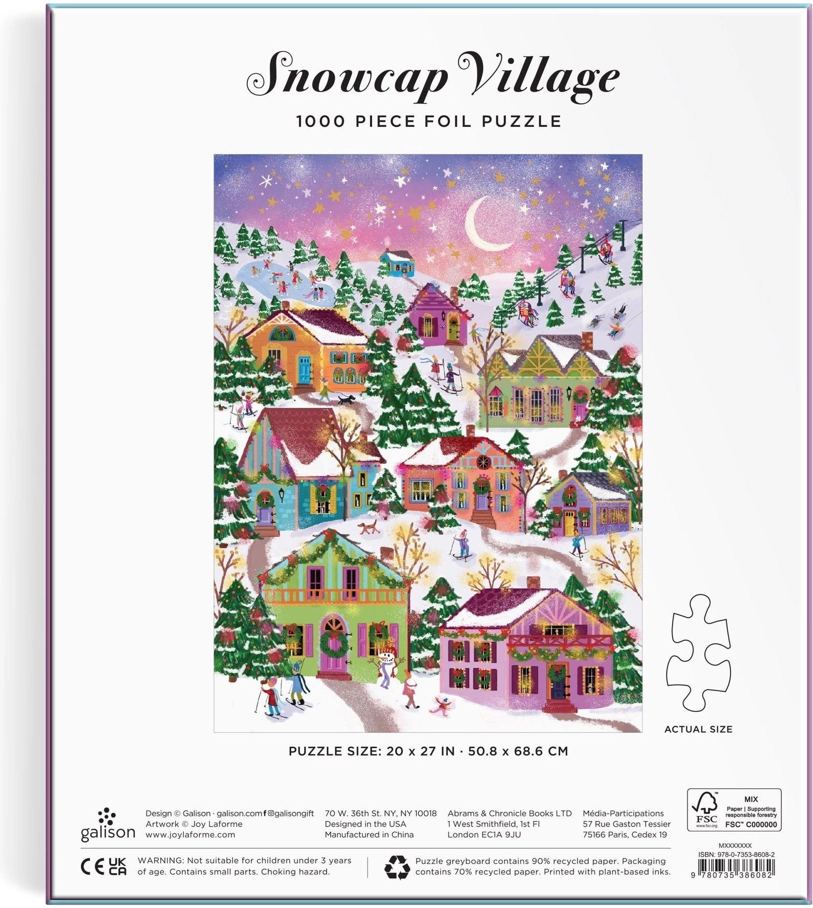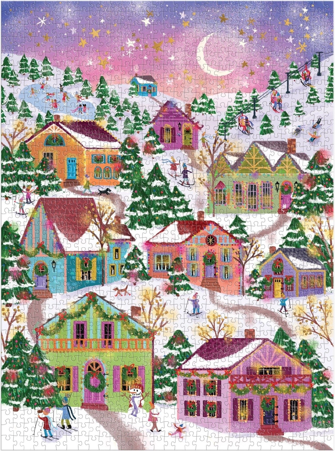 Acest puzzle stilat cu motivul unui sătuc acoperit de zăpadă este ideal pentru serile de iarnă și ca dar pentru iubitorii de puzzle-uri. Efectul metalic creează impresia de aur, argint și alte metale lucioase, datorită căruia imaginea finală iese cu adevărat în evidență.