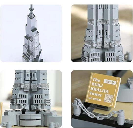 Acest set din colecția de clădiri îți permite să construiești celebrul simbol al Dubaiului – BURJ KHALIFA. Datorită celor 555 elemente, ia naștere un model stabil și realist, care se evidențiază pe raft sau pe birou. Instrucțiunile ilustrate simple facilitează asamblarea pas cu pas.