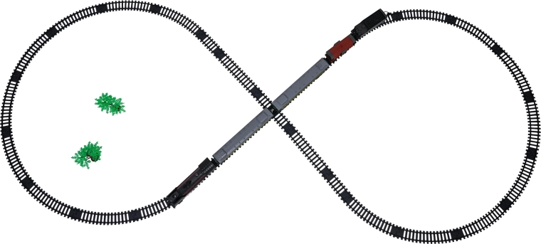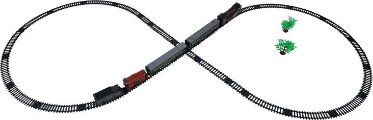 Șinele din plastic rezistent se fixează simplu într-un circuit în formă de opt extinsă. Traseul lung oferă rulare lină și multă distracție.